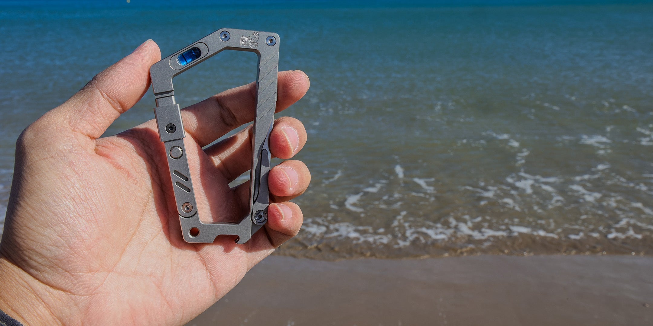 The GH Carabiner is designed to be the ultimate multifunctional tool, combining essential functions into one compact and durable accessory. This tool features a utility knife, hex bit holder, file, bottle opener(Ti), pry bar(Ti), and magnetic storage. It also includes a ruler and a tritium tube slot for low-light visibility. The automatic lock, slider lock, and spring-loaded gate ensure secure and easy handling, while the independent keyhole and built-in level add even more utility. Perfect for everyday carry and adventure, the GH Carabiner is built to support a wide range of tasks.